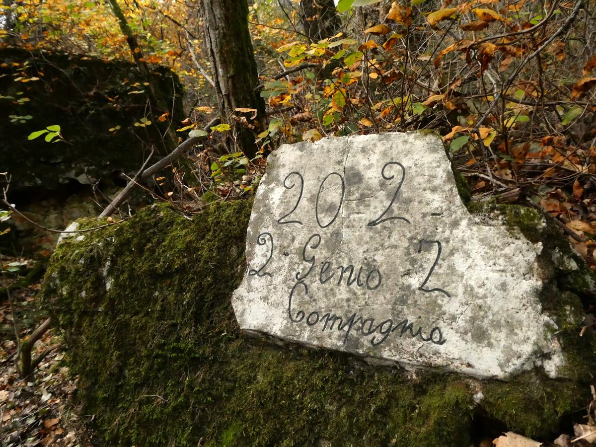 a. La targa del 2° Reggimento Genio Zappatori all'interno della trincea