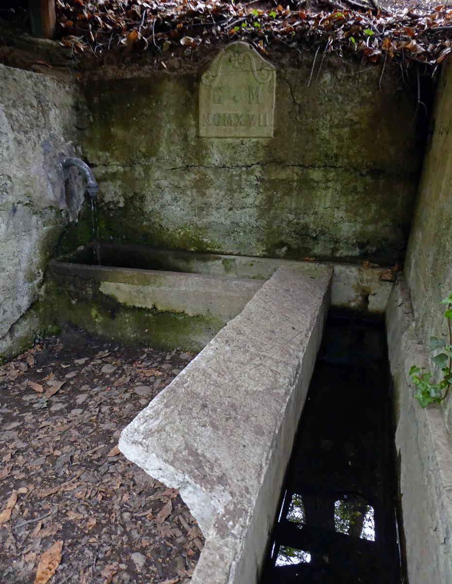 La vasca cui è apposta la targa è posta lungo la strada militare Cavallasca-Sasso Cavallasca, con la funzione di abbeveratoio e di lavatoio, come reso evidente dal piano inclinato.