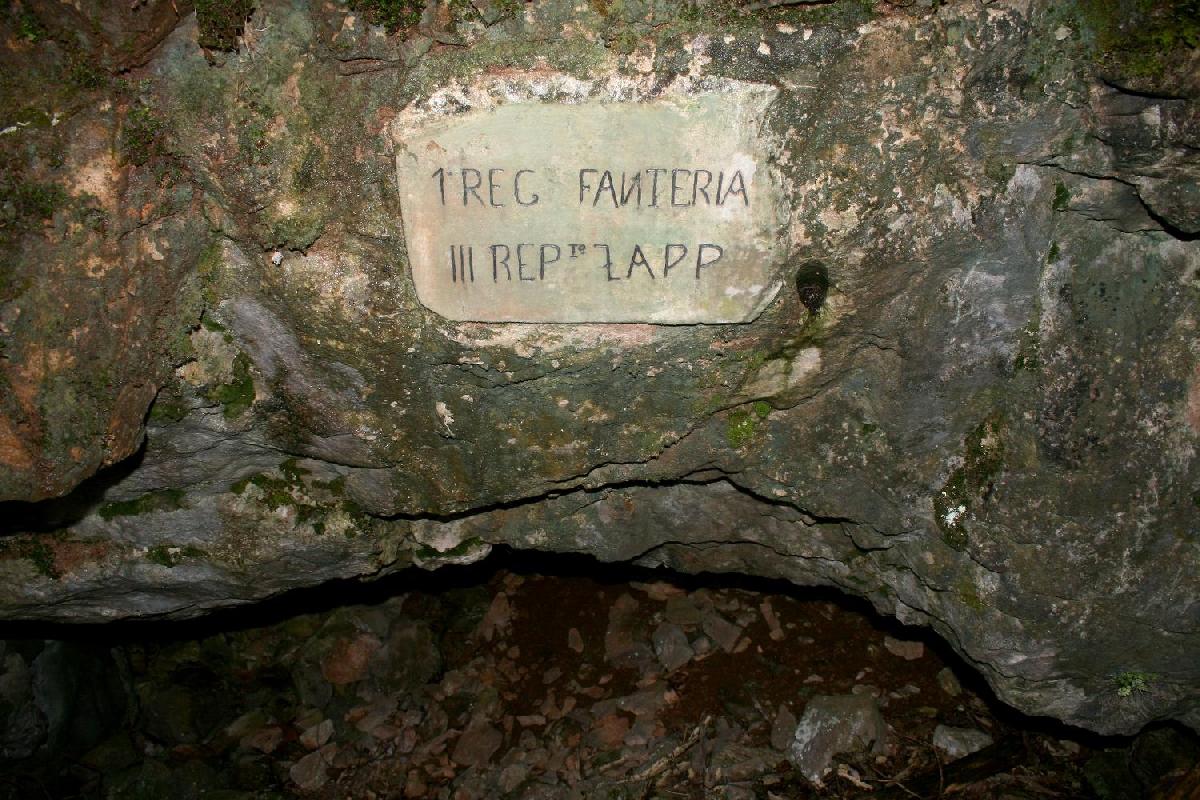 Si noti che la dizione storica di "Dolina Zappatori" fosse ben giustificata dall'utilizzo fatto dal Regio Esercito di questa cavità nell'inverno 1916 - primavera 1917 (punto di ricovero e concentramento per Reparti Zappatori): ben tre graffiti ricordano il III Reparto Zappatori dei diversi Reggimenti che ivi sono transitati, quali il 1° Fanteria, il 39° Fanteria (cod. 000262) e il 73° Fanteria (cod. 000263).