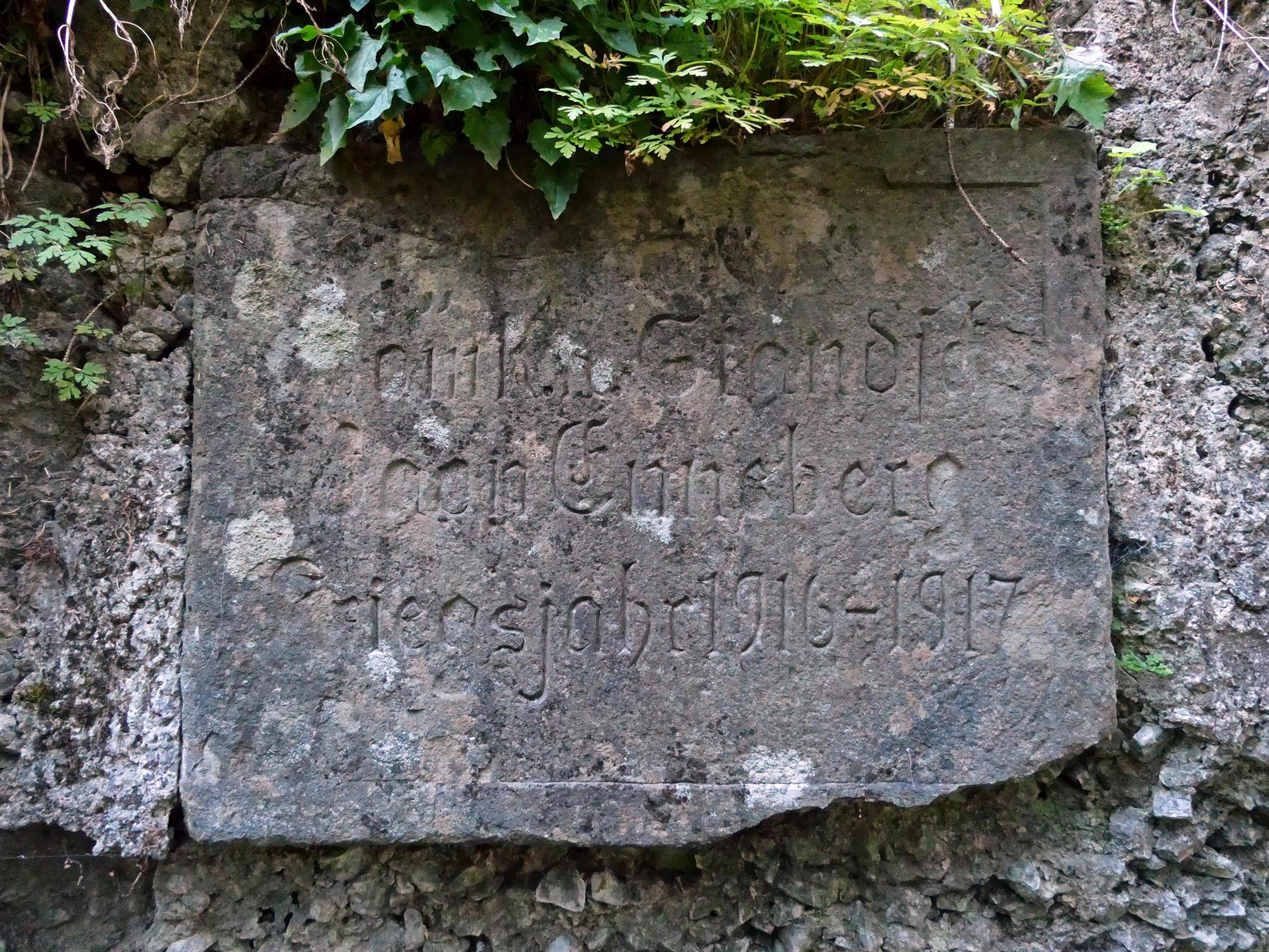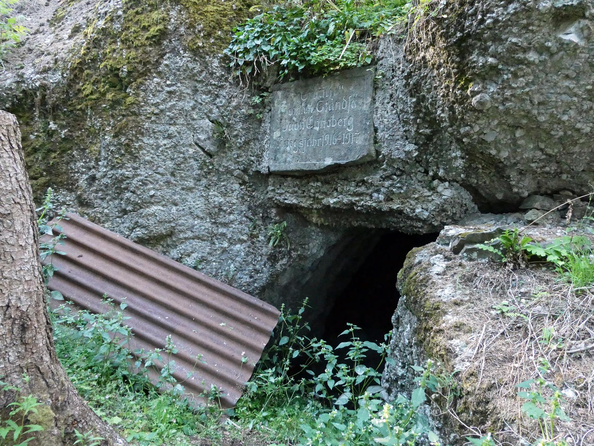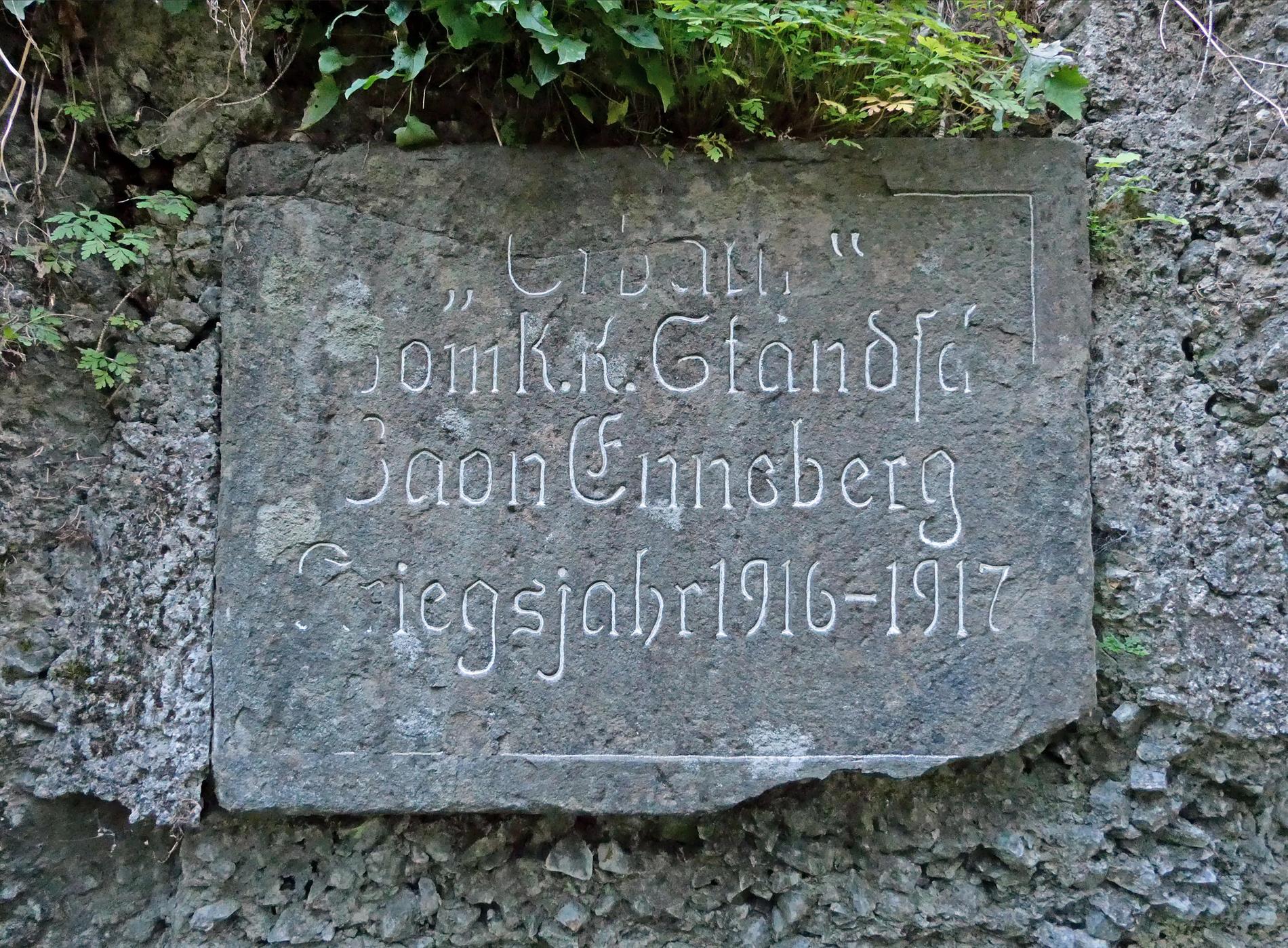 La targa, apposta all'ingresso di un ricovero alle falde occidentali del Sief, presso il Torrente Cordevole, ricorda la presenza degli Standschützen del Battaglione Enneberg nel settore del Col di Lana, protrattasi da giugno 1915 a fine dicembre 1917.
