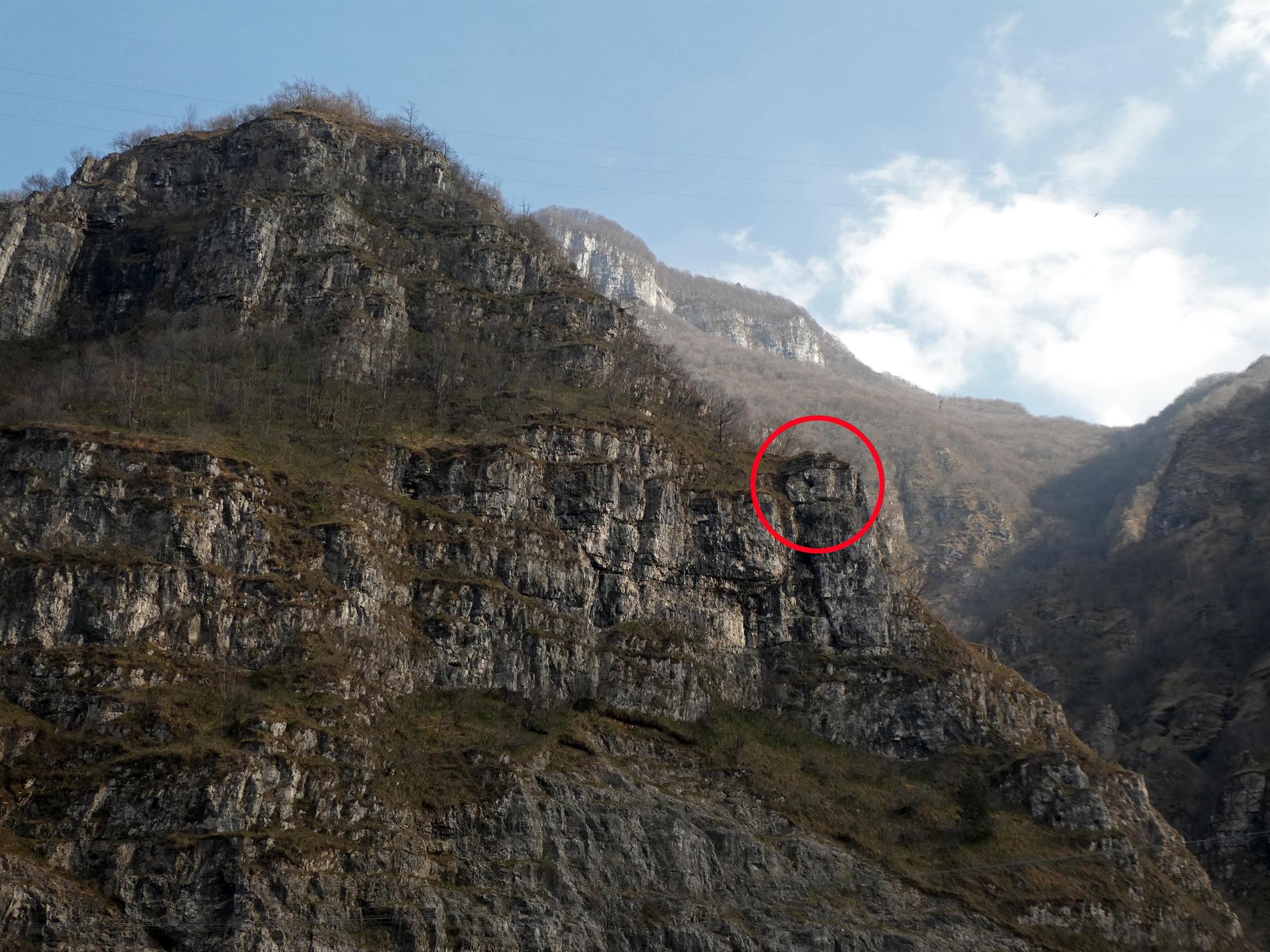 • e. Lo sperone roccioso in cui è ricavata la postazione per mitragliatrice