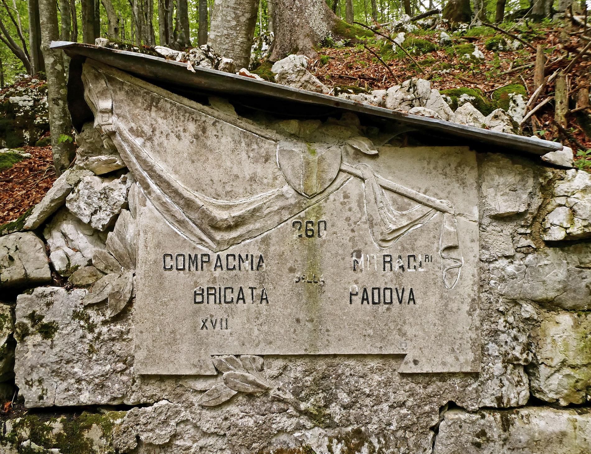 La grande targa monumentale è opera della 260ª Compagnia Mitragliatrici, assegnata alla Brigata Padova dal 15 luglio 1917 e in linea presso il Ridotto Costone nel settembre 1918.