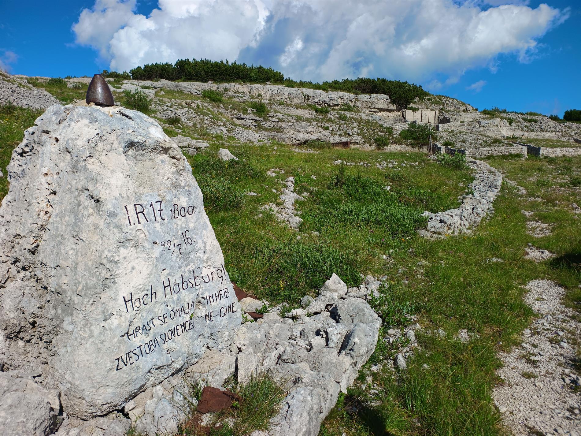 -------- V sredini skal-vrh ġorá, polk ,,Cesarjevič'' si plete slavo. Triġlav naš dom-ti vir solza, zate bori se vstrajno, vdano.