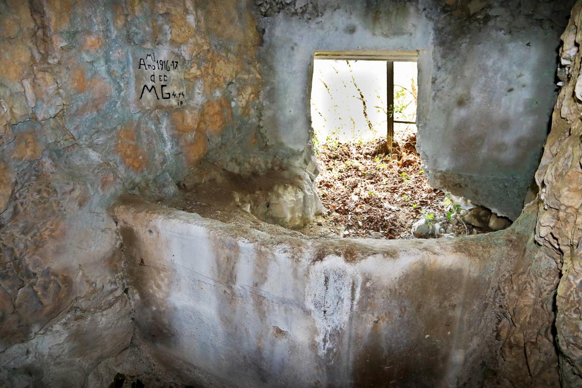 g. Le feritoie della postazione per mitragliatrici, affacciata sulla Val d'Astico