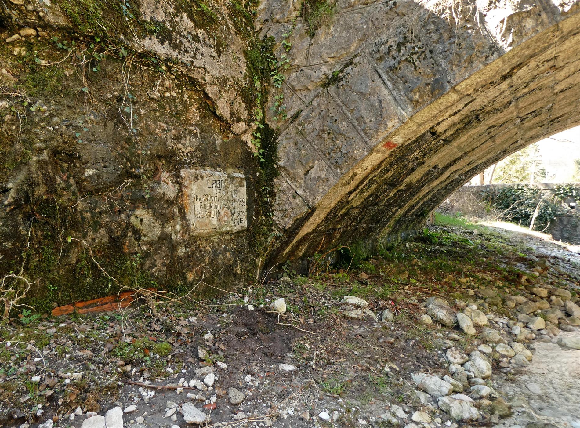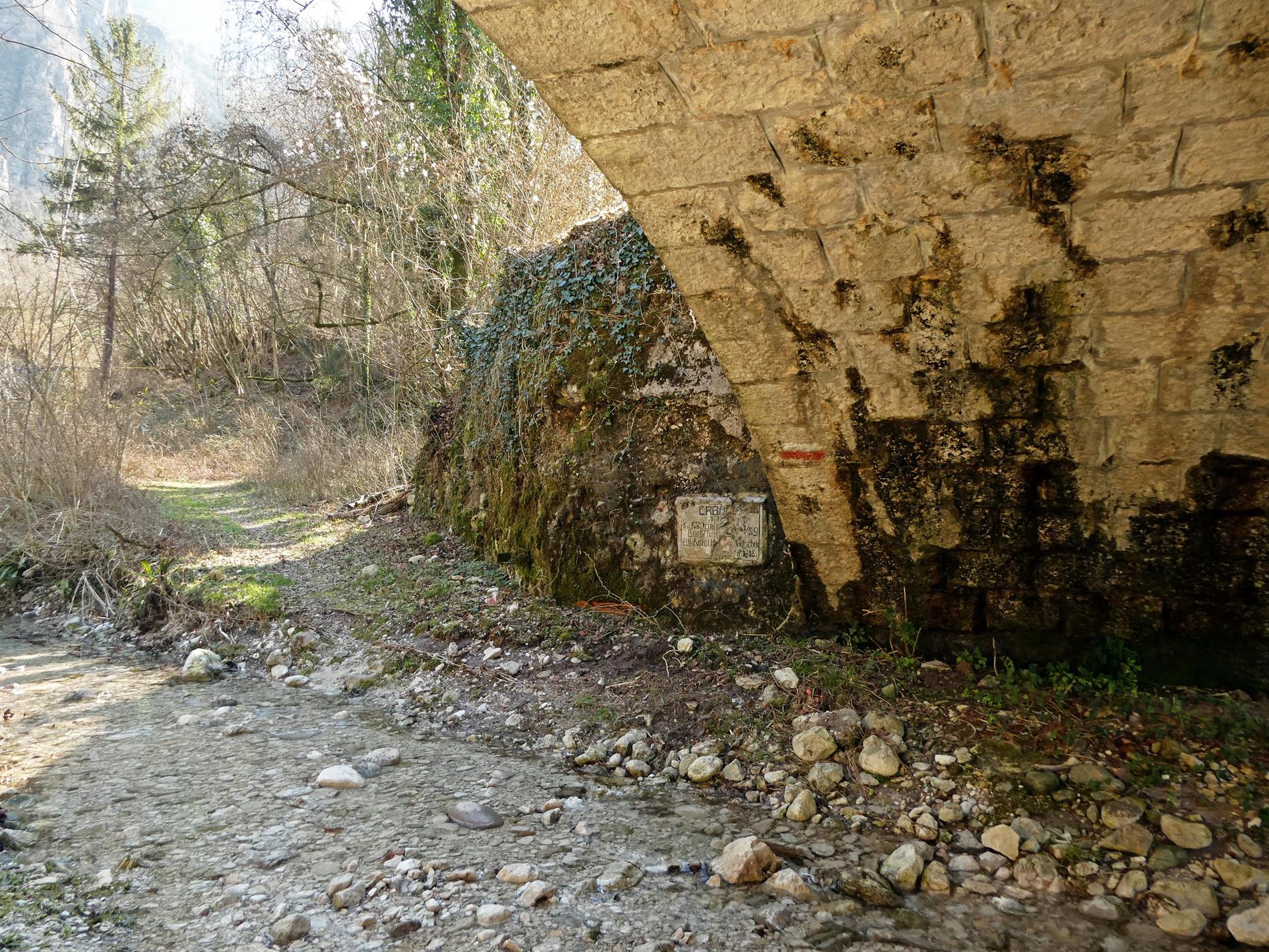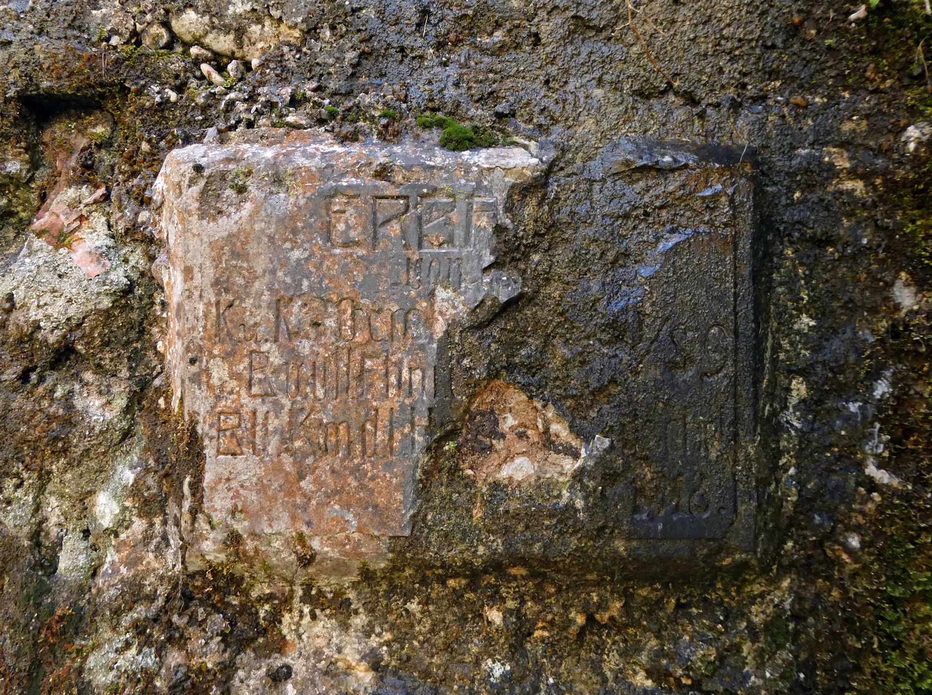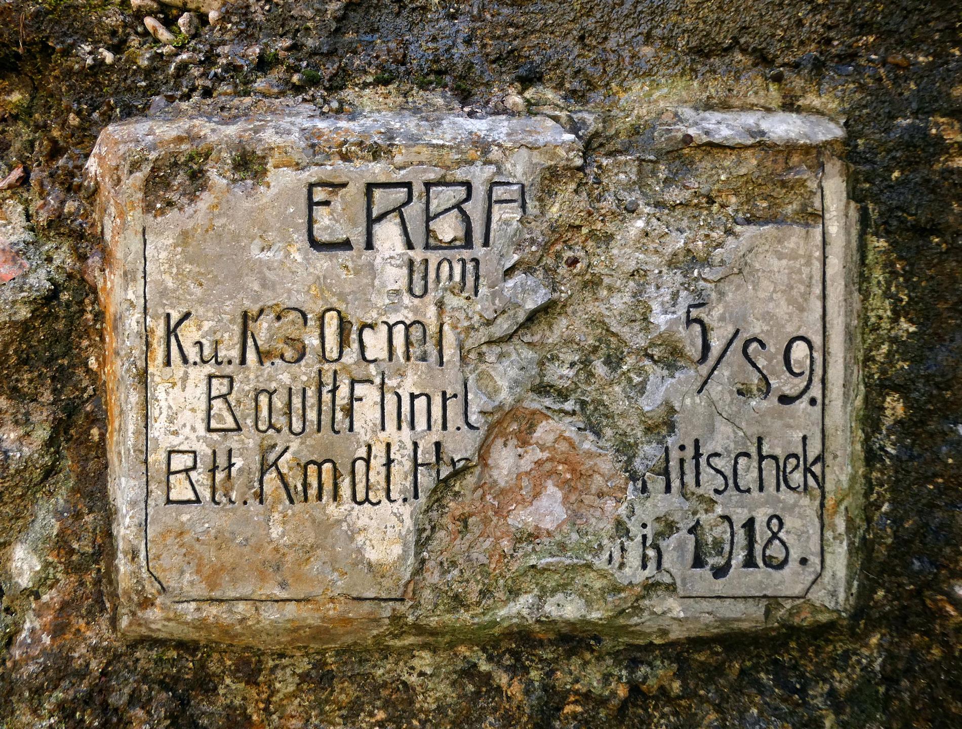 La targa, purtroppo molto danneggiata, ricorda la presenza presso l'abitato di Cismon del Grappa della 5ª Batteria Mortai da 30,5 cm dell'Imperiale e Regio Reggimento di Artiglieria Pesante n° 9 (uno dei 14 nuovi reggimenti costituiti dalle precedenti formazioni di Artiglieria da Fortezza, nell'ambito della riorganizzazione dell'artiglieria austroungarica della primavera del 1918).