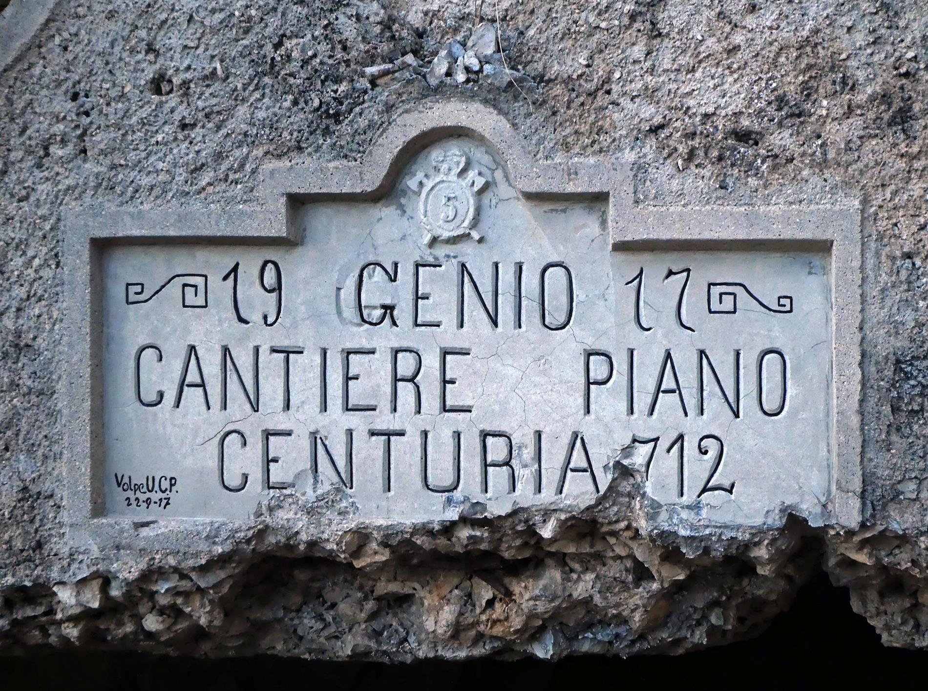 Dal giugno del 1916, dopo la conclusione della c.d. Strafexpedition, operarono in alta Vallarsa diverse compagnie di Centurie Lavoratori, impegnate in specifiche aree di lavoro (come il "Cantiere Piano" , testimoniato dalla presente epigrafe, e il "Cantiere Speccheri"; cfr. cod. 002496), per la realizzazione di opere a servizio della linea di massima resistenza italiana. Si ricordano, a titolo esemplificativo, i lavori di fortificazione del Monte Parmesan (cfr. cod. 002491), la riparazione del ponte di Speccheri (cfr. codd. 002492, 002493 e 003664) e la costruzione/manutenzione della camionabile tra Speccheri e Piano (cfr cod. 002495).