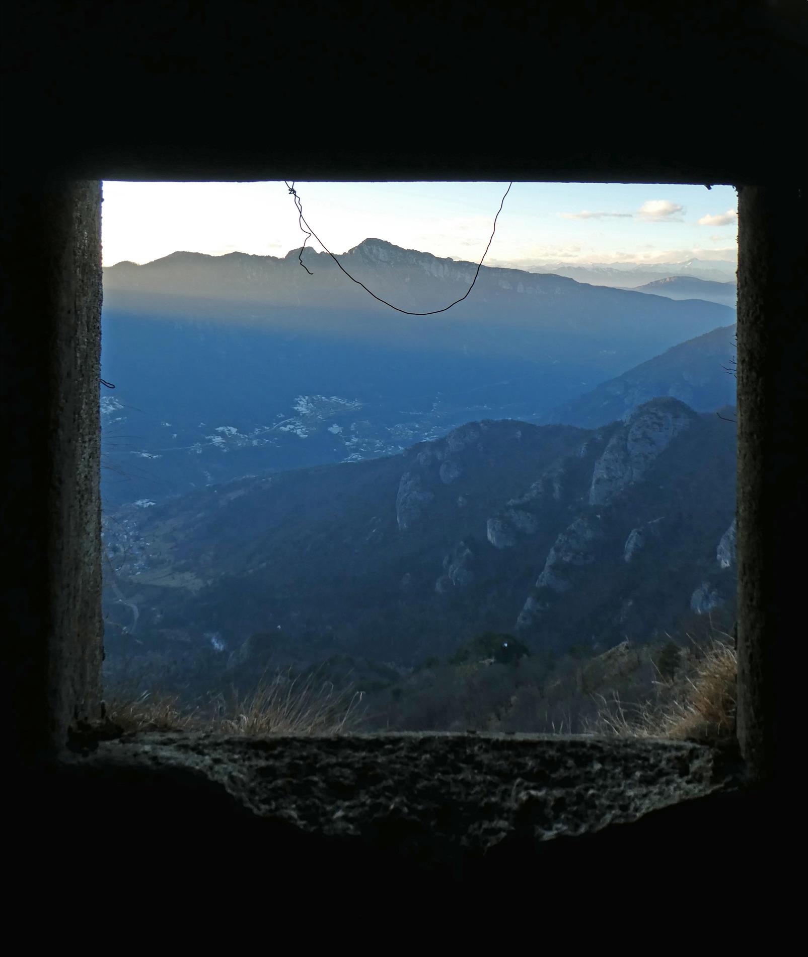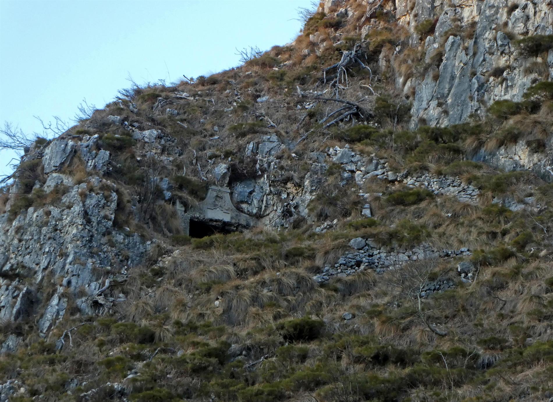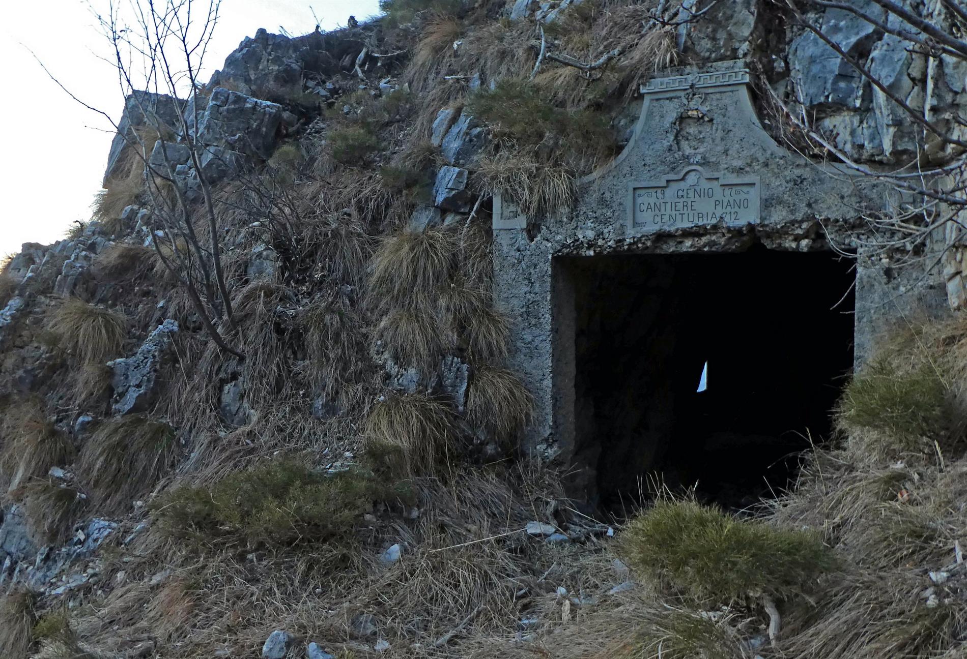 La targa emerge all'ingresso di un elaborato portale, situato presso la sella tra il Monte dietro il Gasta (o Stadel) e i Campanili di Cherle, ch dà ingresso a una breve galleria, probabilmente adibita a osservatorio, con ampia vista in direzione nord-est verso lo sboccco della Val di Piazza, la Vallarsa e il Monte Zugna.