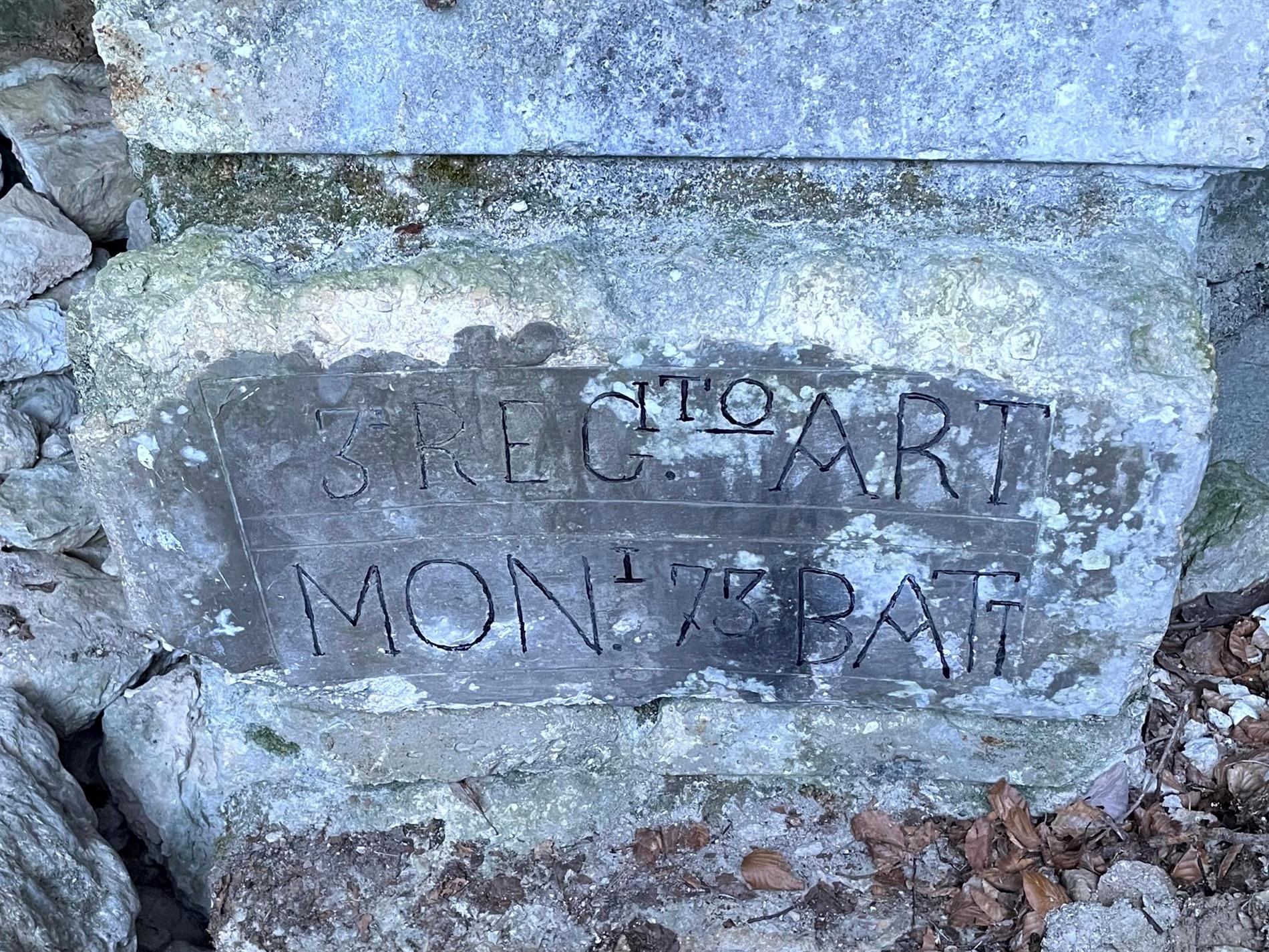 La lettera in apice "I" dopo l'incisione "MON." potrebbe essere una "T", a modo di abbreviazione, seppur inusuale, per la parola "Montagna".