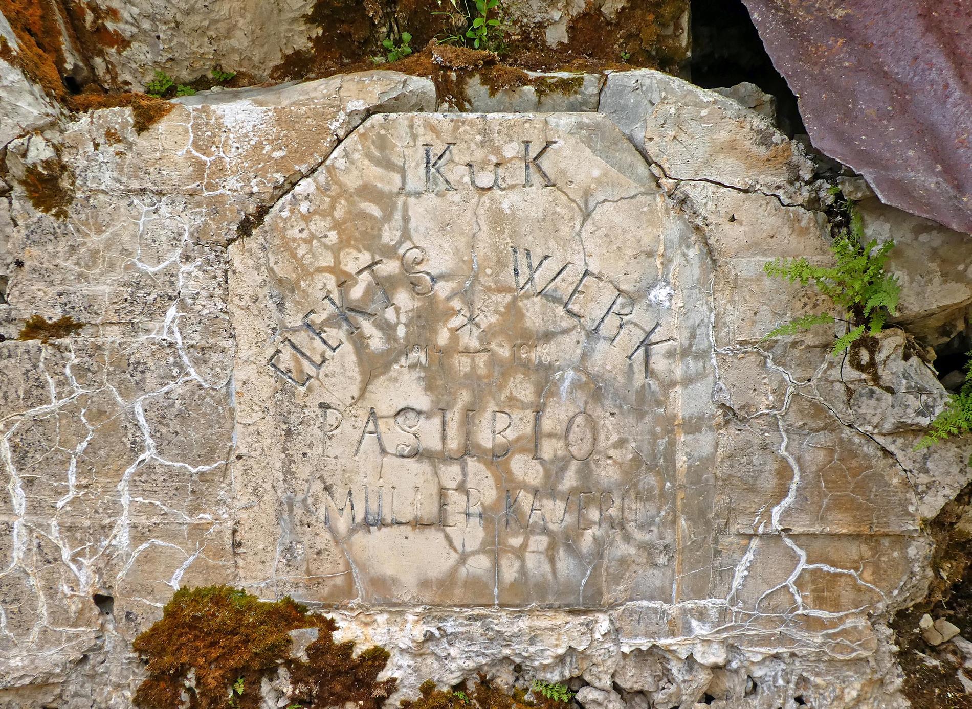 a. La targa della Centrale elettrica presso la Müller Kaverne nella Conca della Cisterna