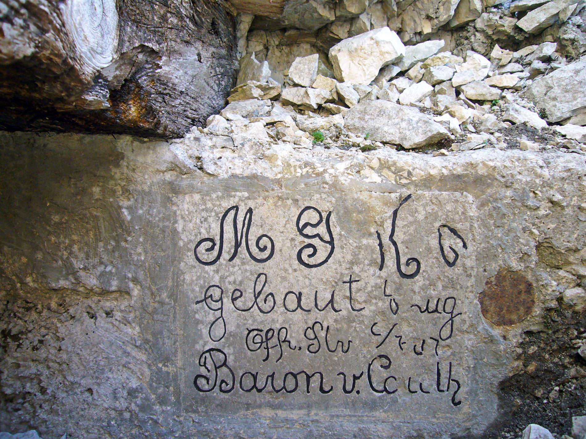 Costruito [...] Plotone (?) Sottoufficiale Luogotenente [...] Barone von Couth (?)