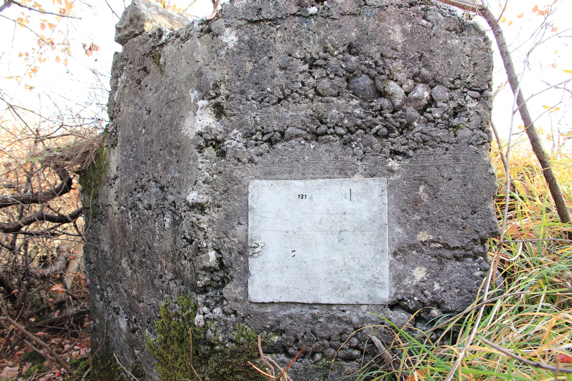 Targa incompiuta o ripianata, presente all'interno della trincea in cemento che, fra l'ultima decade del luglio 1915 (Seconda Battaglia dell'Isonzo, fase che portò alla conquista italiana della posizione) e la prima decade dell'agosto 1916 (Sesta Battaglia dell'Isonzo, evento a cui conseguì la progressione italiana per alcuni chilometri nell'entroterra carsico), costituì l'asse fondamentale del sistema trincerato avanzato tenuto dal Regio Esercito lungo il ciglione che del Monte Sei Busi digrada verso le Alture di Vermegliano. Trincea che successivamente, dall'agosto del 1916 fino alla ritirata italiana conseguita allo sfondamento austro-tedesco di Caporetto (scattata sul Carso il 27 ottobre del 1917), venne inglobata in quello che nel 1917 rappresentava il settimo sistema fortificato arretrato della 3ª Armata, ossia laLinea di San Martino.