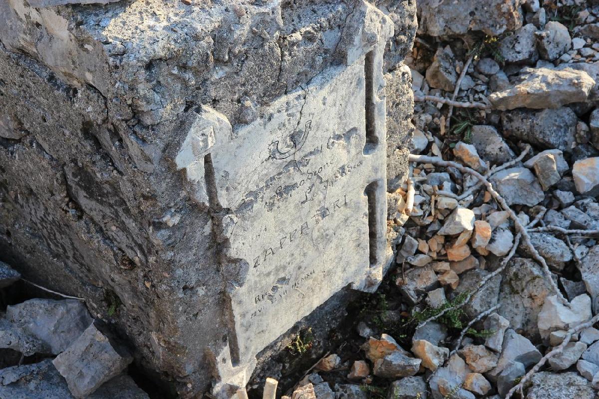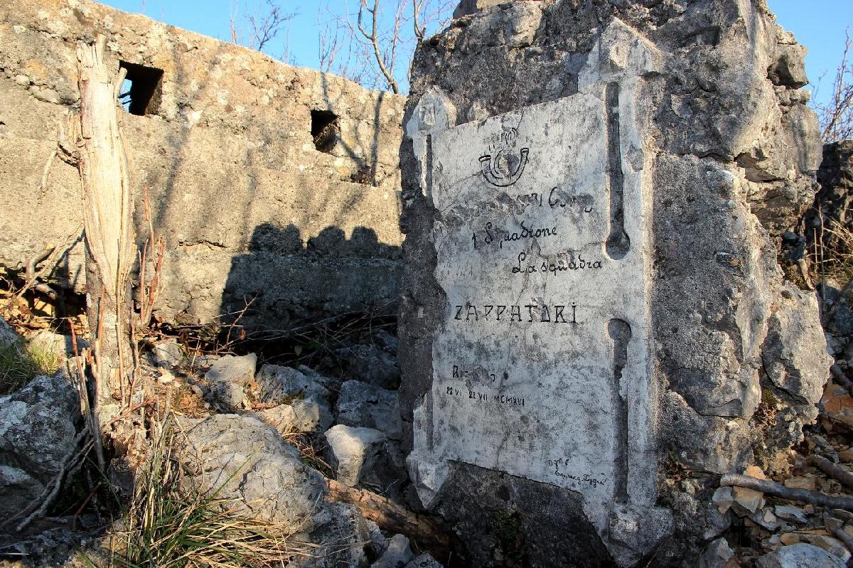 b. La targa, evidenziata, sulla trincea di resistenza italiana