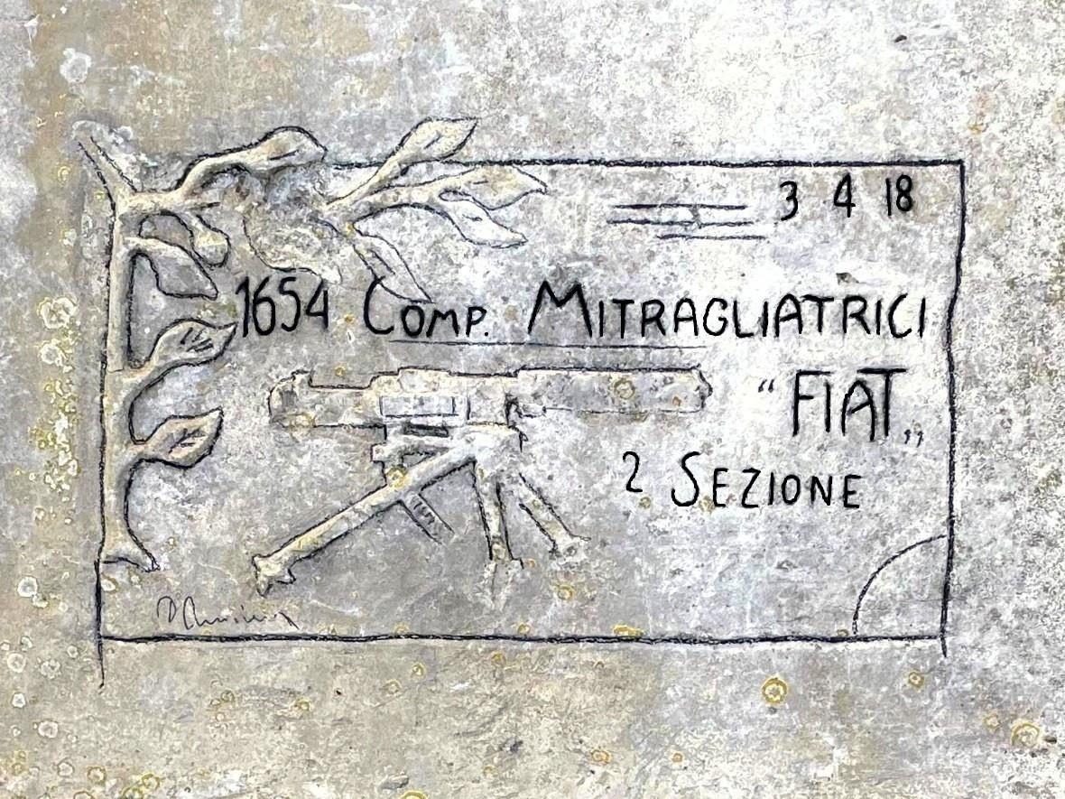 Anche nelle postazioni per mitragliatrice sono state trovate tracce del passaggio delle seguenti Compagnie che hanno presidiato questi luoghi: la 160ª Compagnia Mitragliatrici modello S.Etienne (su monte Vies); la 2170ª Compagnia Mitragliatrici (su monte dei Pini); la 1807ª Compagnia Mitragliatrici modello Lewis (su monte Cingla) e la 1654ª Compagnia Mitragliatrici modello Fiat (anch'essa su monte Cingla, sulla vaschetta della presente scheda).