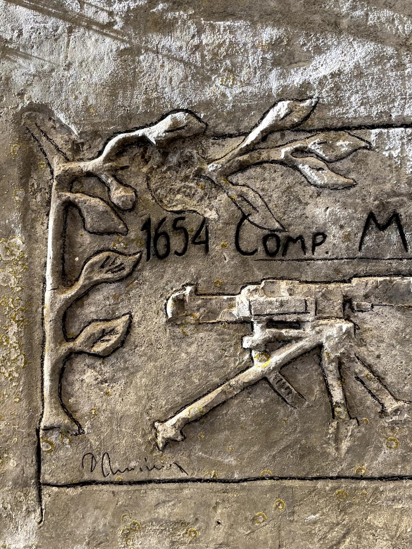Seppur per un breve periodo (ottobre-novembre 1918), anche la Brigata Perugia ha presidiato il monte dei Pini, lasciando testimonianza del suo passaggio con un graffito proprio del 129° Reggimento Fanteria.
