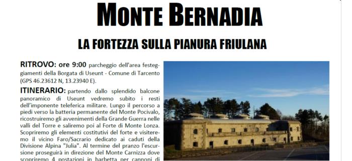 Domenica 30 maggio 2021: ESCURSIONE STORICA SUI LUOGHI DELLA GRANDE GUERRA - BERNADIA, LA FORTEZZA SULLA PIANURA FRIULANA