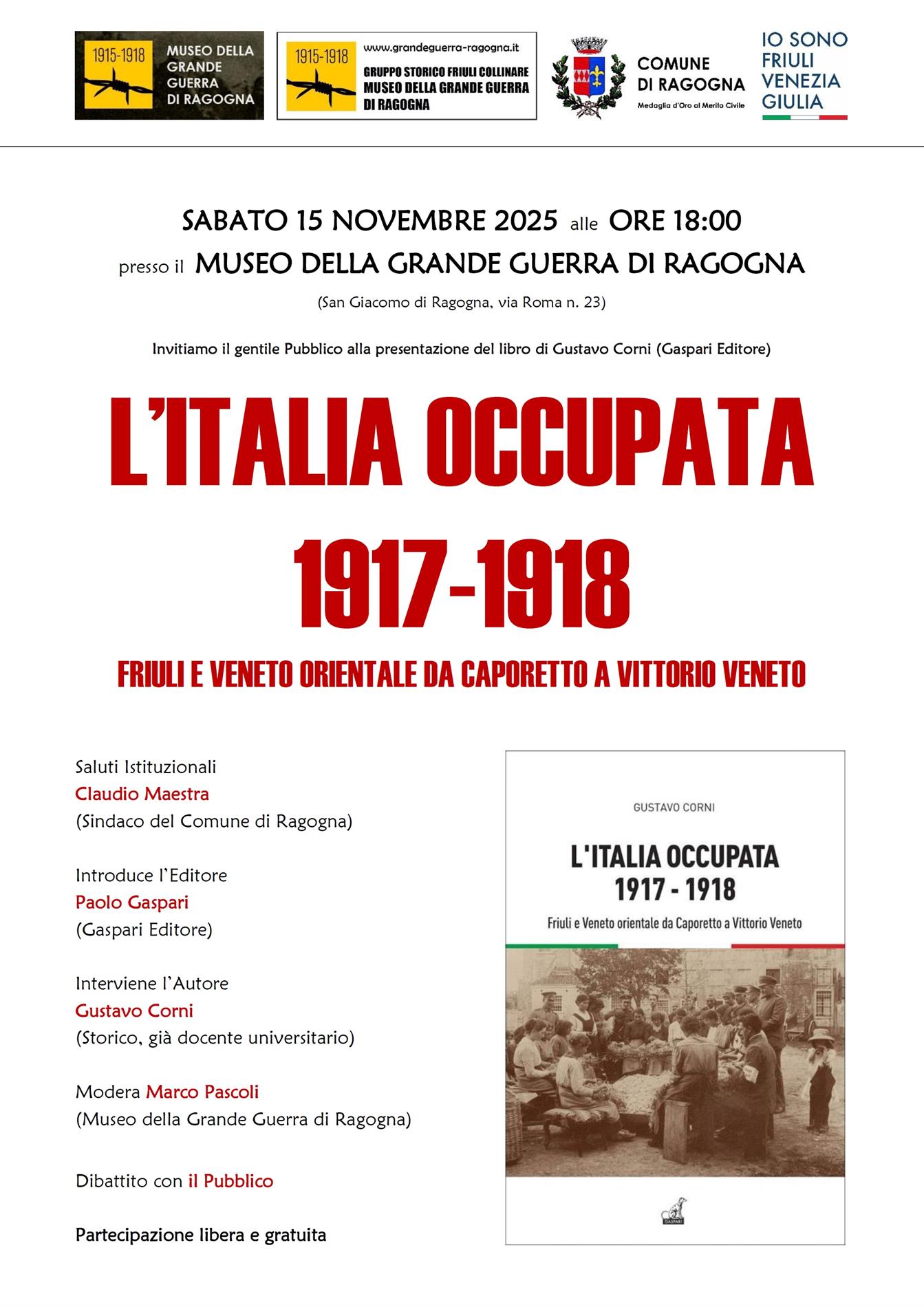 L'ITALIA OCCUPATA 1917-1918. FRIULI E VENETO ORIENTALE DA CAPORETTO A VITTORIO VENETO - Presentazione del libro di Gustavo Corni al Museo della Grande Guerra di Ragogna