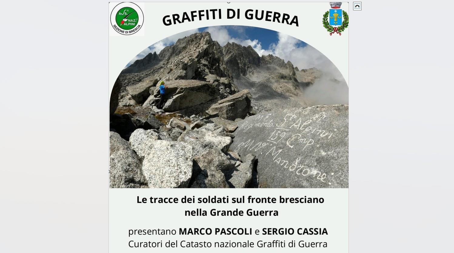 Intervengono Sergio Cassia e Marco Pascoli (Coordinatori del Catasto dei Graffiti della Grande Guerra)