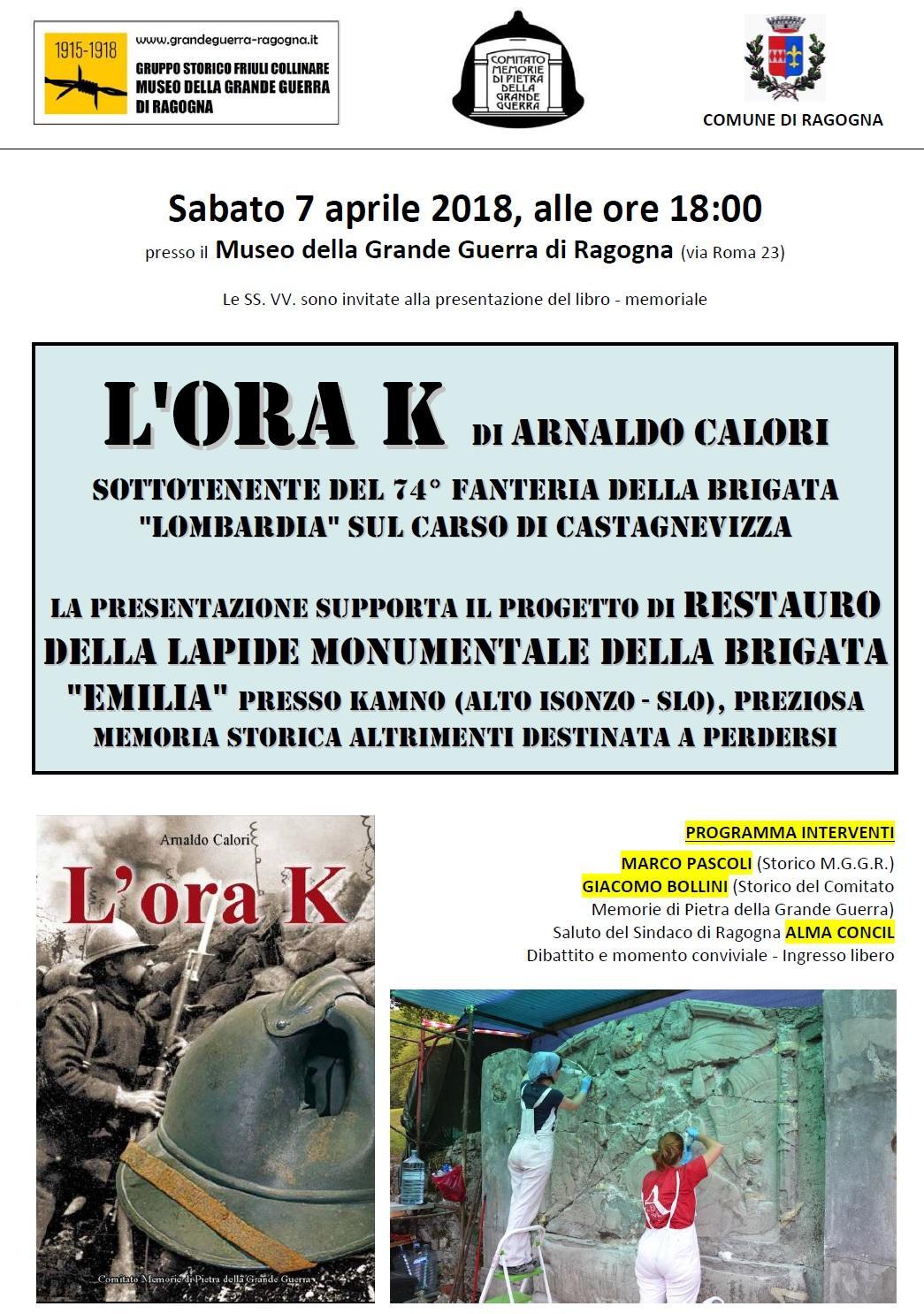 Presentazione "L'ORA K" di Arnaldo Calori, in favore del restauro della lapide monumentale Brigata Emilia presso Kamno